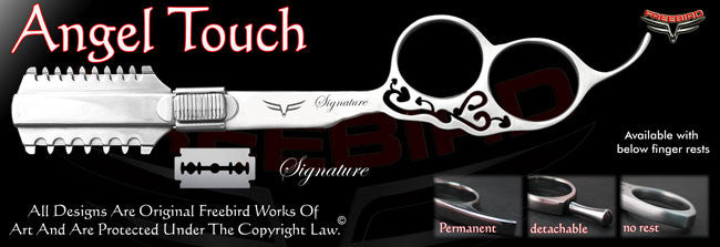 Freebird Shears is the only shear company in the world that lets you build your own professional custom razors from scratch in just a few easy steps. Our Custom razors are hand made one by one according to our customers specifications right here in the U.S.A. out of high quality stainless steel. No plastic parts whatsoever. All of our razors come with a lifetime and a money back guarantee. We stand behind our products 100%. Making flawless precision instruments that reflect who our customers are as professionals, as artists and as human beings is what we are all about.