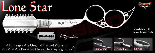 Freebird Shears is the only shear company in the world that lets you build your own professional custom razors from scratch in just a few easy steps. Our Custom razors are hand made one by one according to our customers specifications right here in the U.S.A. out of high quality stainless steel. No plastic parts whatsoever. All of our razors come with a lifetime and a money back guarantee. We stand behind our products 100%. Making flawless precision instruments that reflect who our customers are as professionals, as artists and as human beings is what we are all about.