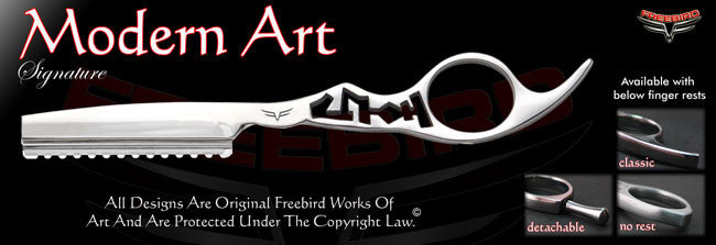 Freebird Shears is the only shear company in the world that lets you build your own professional custom razors from scratch in just a few easy steps. Our Custom razors are hand made one by one according to our customers specifications right here in the U.S.A. out of high quality stainless steel. No plastic parts whatsoever. All of our razors come with a lifetime and a money back guarantee. We stand behind our products 100%. Making flawless precision instruments that reflect who our customers are as professionals, as artists and as human beings is what we are all about.