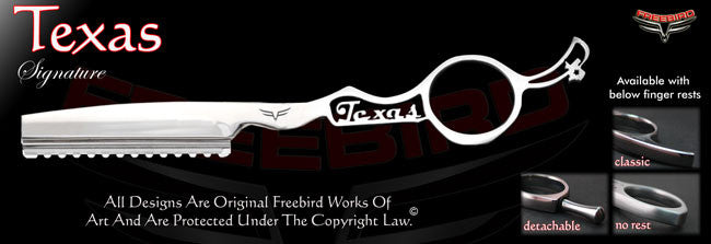 Freebird Shears is the only shear company in the world that lets you build your own professional custom razors from scratch in just a few easy steps. Our Custom razors are hand made one by one according to our customers specifications right here in the U.S.A. out of high quality stainless steel. No plastic parts whatsoever. All of our razors come with a lifetime and a money back guarantee. We stand behind our products 100%. Making flawless precision instruments that reflect who our customers are as professionals, as artists and as human beings is what we are all about.
