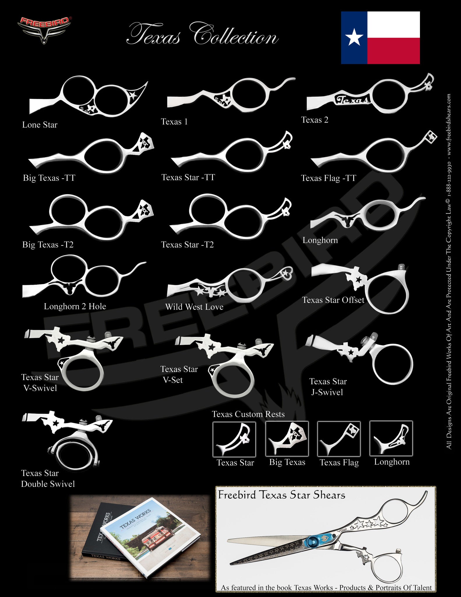 Freebird Shears is the only shear company in the world that lets you build your own shears from scratch in just a few easy steps for no extra charge right here in the U.S.A. We have combined the finest Japanese and German Steels with German Craftsmanship and American Technology to bring you a new kind of quality that you will not find anywhere else. Simply choose your top and bottom handles, your shear length and shear details and we custom make a shear for you that will keep turning heads. We even have 2 types of very easy payment plans available. Owning a shear that is truly yours has never been easier. Now lets get started!