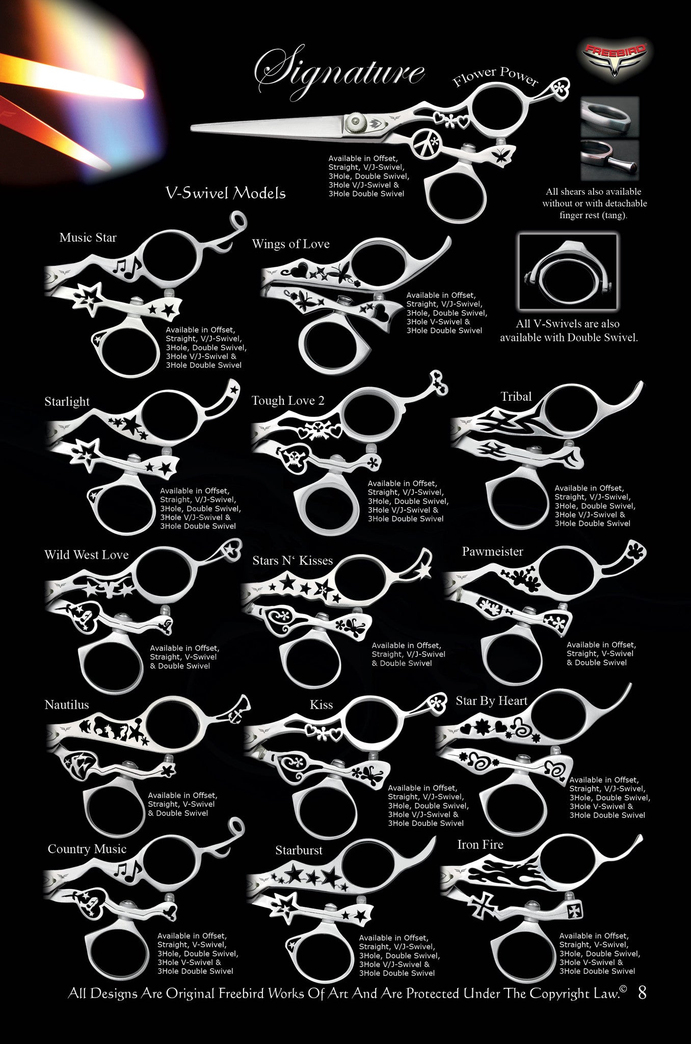 This is a collection of our popular V Swivel Shears. You can pick a design from our catalog pages or mix&match any top and bottom at no extra charge.
