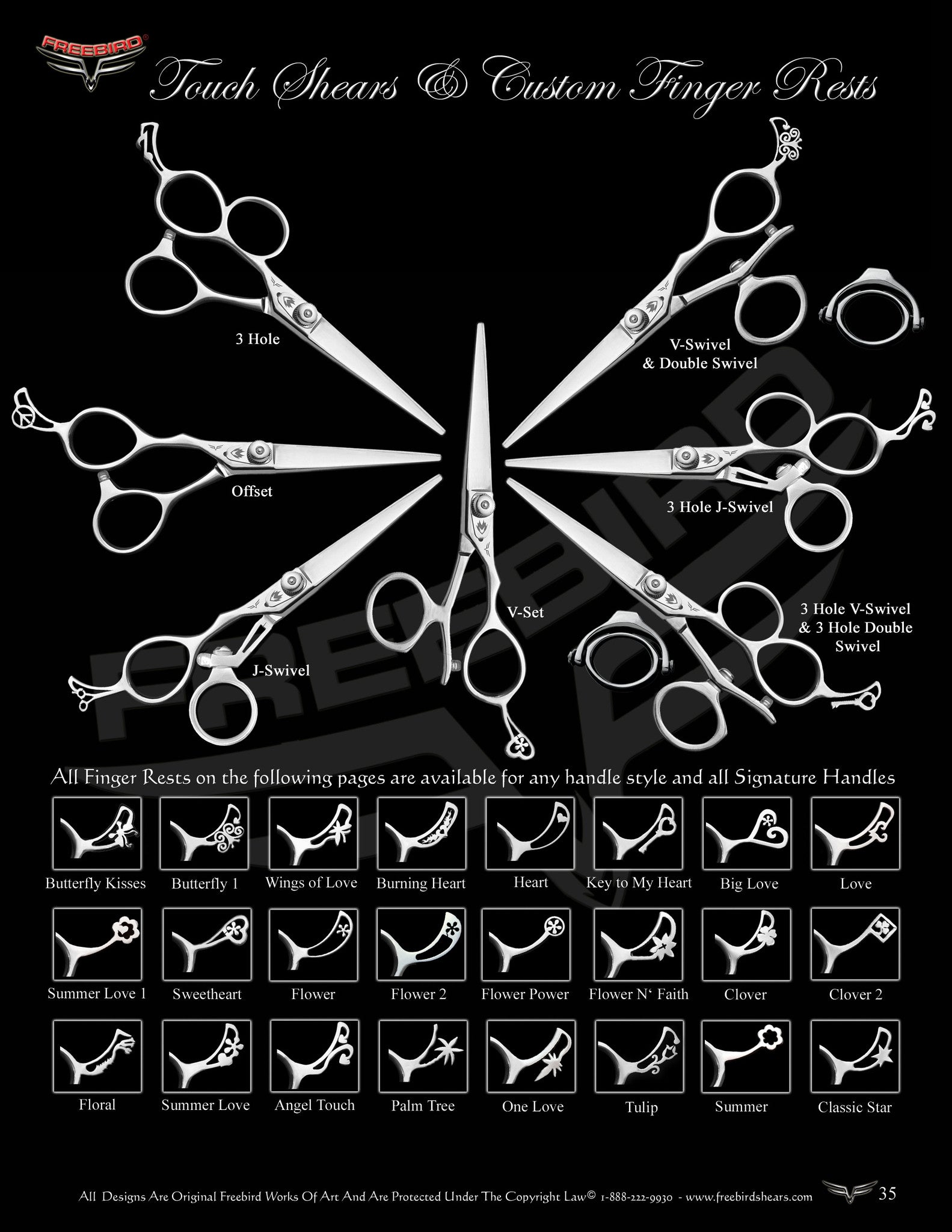 Classic Shears with a Touch of Art in form of an elegant finger rest. Simply choose your handle type, shear details and the custom finger rest of your choice and we will create a one of a kind shear for you.