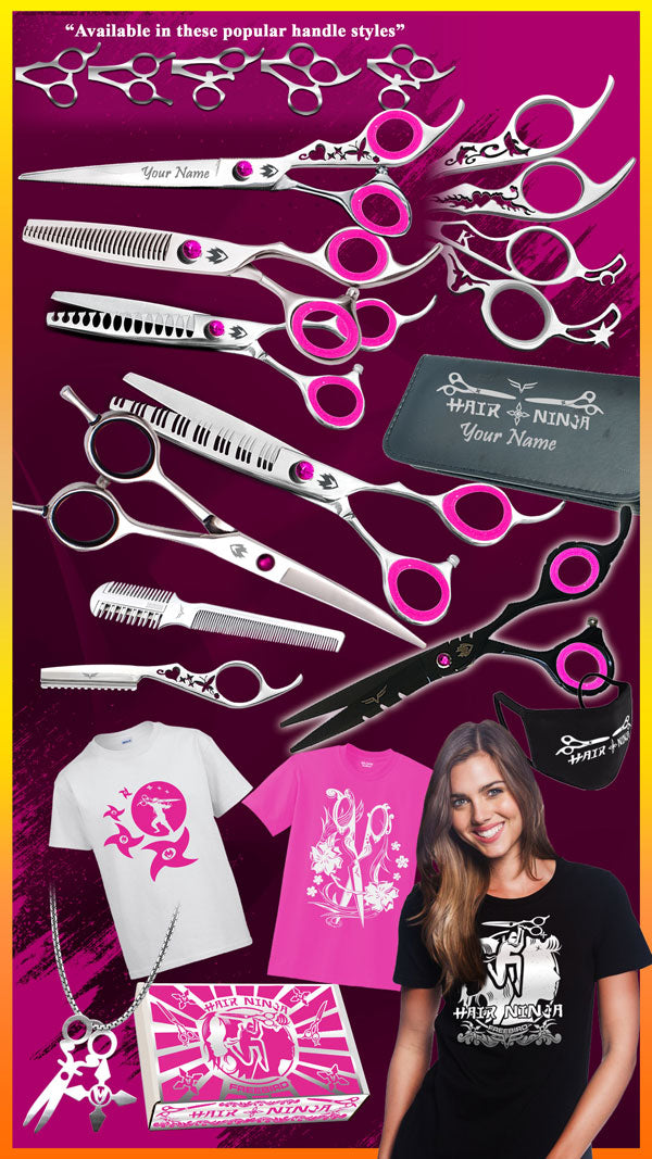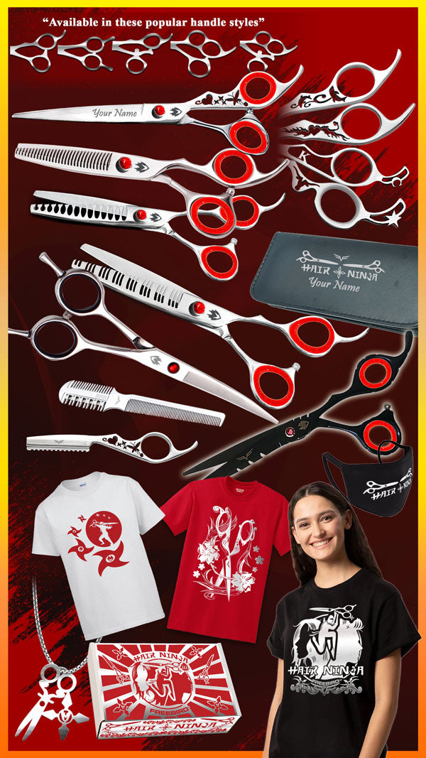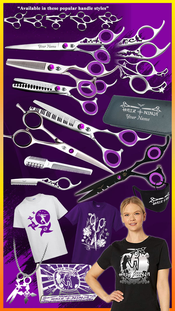 We are thrilled to present The Hair Ninja🙅♀️🐶🙅♂️ Custom Package. It includes the perfect mixture of amazing shears, tools and gear for even the busiest of Hair Ninja's and is our highest quality best value package to date. Yes, you really get EVERYTHING that you see in the picture! We are so excited about this particular deal because it offers more handle and custom options than ever before. It includes 6 shears including a True Handmade Custom Shear of your choice, two more designer shears of your choice, 3 additional shears of your choice and a ton of other awesome items. It has a total value of over $1100.00. Remember we have...
