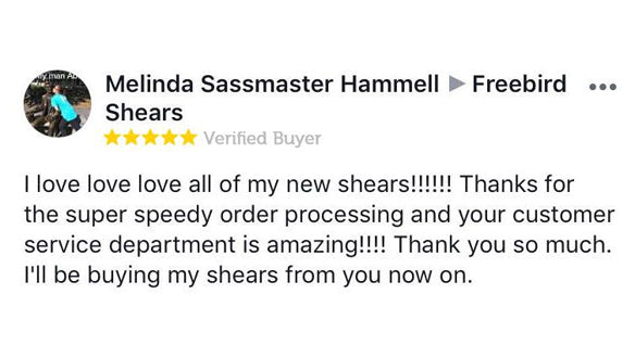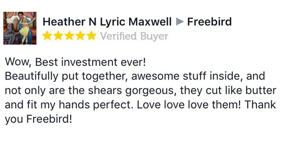 I love Freebird Shears so much that I stalk their website on a regular basis just to see what awesome stuff they came up with now. I have used many shears in my life but Freebirds are are my absolute favorites! The passion and level of attention to detail the Freebird folks put into their work is second to none.
